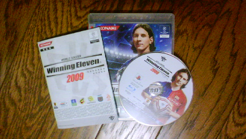 ウイニングイレブン2009、ちょっと買うの様子見してたんです。が、ゲーム屋に寄ったらいい感じでディスプレイされてたんで、誘惑に負けて買っちゃいました。