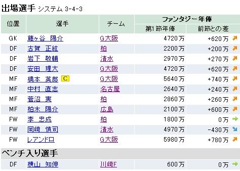 まずは第1節の結果なんですけど・・・、80fpでした。あれ?思ったより悪くはなかったな。川崎勢はイマイチだったけど、明神・ジウシーニョあたりが奮闘してくれました。現在の資金は4億1380万です。