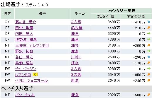 まずは第5節の結果なんですけど・・・、85fpでした。今季最高ポイントです。大分のDFが伸びなかったのは痛かったな。西川はよかったんだけどね。現在の資金は4億5980万です。
