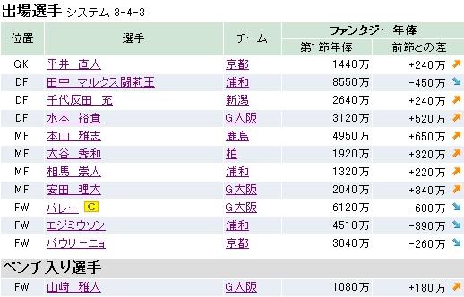 まぁ、初回なんでね、あんまり一喜一憂しないことにします。とはいえ、キャプテンに指名したバレーがまさかの1fpには泣けたなぁ・・・。FWをキャプテンにするのはリスクを伴う?現在の資金は4億1330万です。