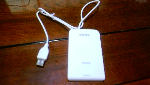 アマゾンで買いました。『PaSoRi』(パソリ)です。詳しく言うと「非接触ICカードリーダー/ライター」という長ったらしい名前です。けっきょく何かというと、PCにつないでEdyカードなどにチャージしたり、買い物したり出来るようになる代物です。