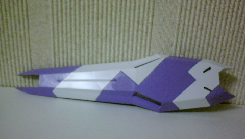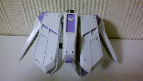 連邦のマークのところ、黒っぽいパーツだったけど紫に塗っちゃいました。やっぱ、白と紫に絞った方が見た目がゴチャゴチャしなくていいかな。ということで、サイドのパーツも紫に。
