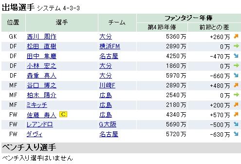 低迷が続いてる・・・。全体的に低調だったな。浦和、新潟勢も勝ったわりには伸びなかったよ。現在の資金は4億3820万です。現状打破!!・・・ってことで第5節。