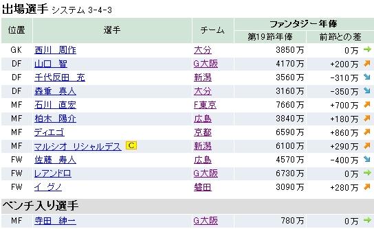 まずは第19節の結果なんですけど・・・、75fpでした。レッズとアントラーズ勢が伸びなかったなぁ