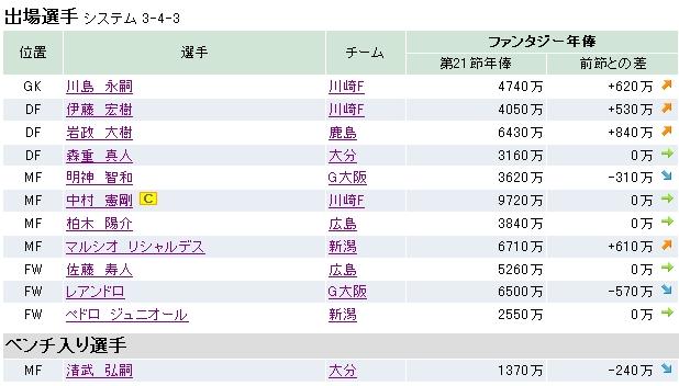 まずは第21節の結果なんですけど・・・、90fpでした。けっこう良かったな