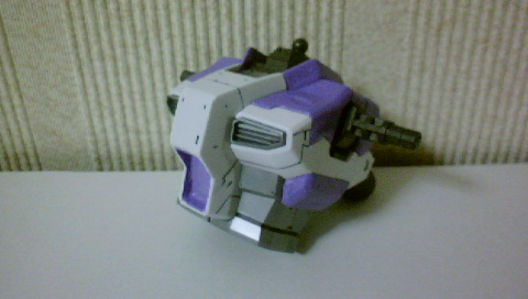 排気口?やお腹が銀色なんだね。ちょっとやぼったい感じがするけど・・・。白パーツにはスミ入れしてますが、紫に塗ったパーツにはしてません。かなり神経使いそうなんで最後の仕上げの時にしようっと。