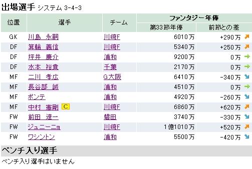 まずは第33節の結果なんですけど・・・、96fpでした。