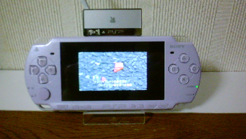 アンテナを延ばして地域設定。それだけで・・・、映りました、ワンセグ!さすがにPSPだと画面が大きくていいんですが、逆に大きすぎてぼやけた感じにもなっています。