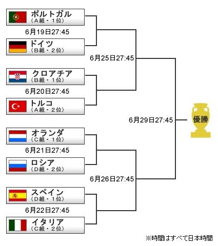 ポルトガルの決勝への筋道が見えているような組み合わせになってますね(笑)。まぁ、ドイツが勝つかもしれませんが。一方のブロックではスペインvsイタリアが非常に楽しみです。希望としてはスペインに勝ってほしいな。今大会はイタリアの試合ばっかり見てるんで、もういいかなと(爆)。